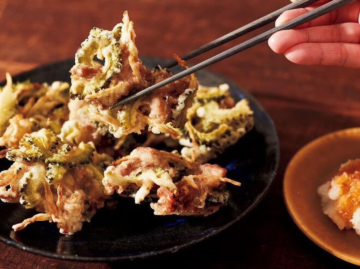 かき揚げにするとゴーヤーの苦みがやわらぎ、ぐんと食べやすくなります! ころもに片栗粉を使って、カリッと食感よく揚げるのもおいしさの秘密です。