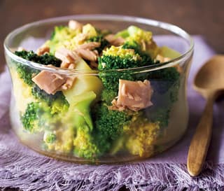 直径20~22cmの耐熱の平皿に、なす、豚肉を器の外側から内側に向かって、少しずつずらしながら重ね入れる。酒大さじ1をふり、ふんわりとラップをかけて電子レンジ(600W)で6分ほど加熱する。ラップを取って梅ポン酢をかけ、万能ねぎをふる。