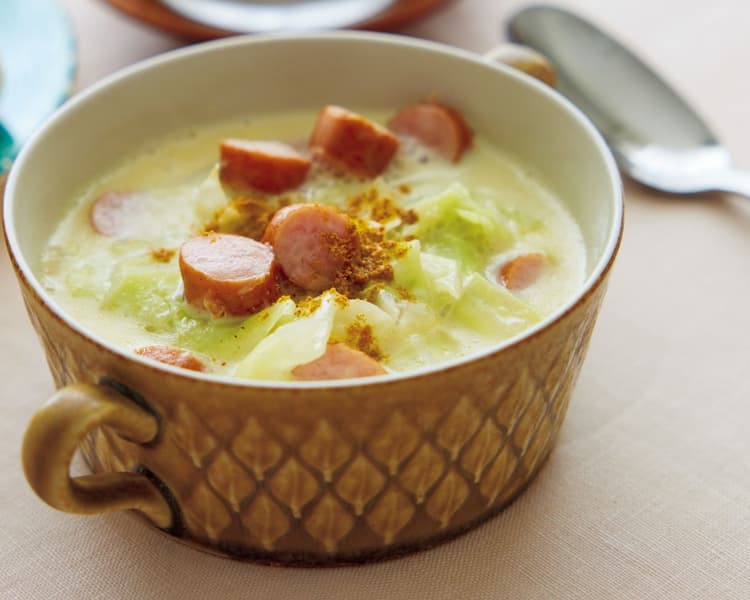 \ オレペAIが選んだ /「ソーセージとキャベツのカレー豆乳スープ」の
