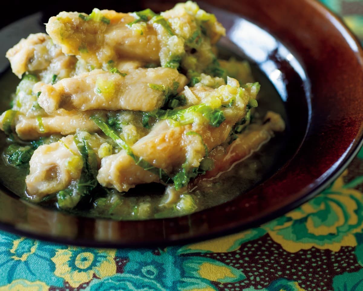 鶏スペアリブをみぞれ煮で。かぶのやさしい味わいと、葉のほどよい苦みがアクセントになります。