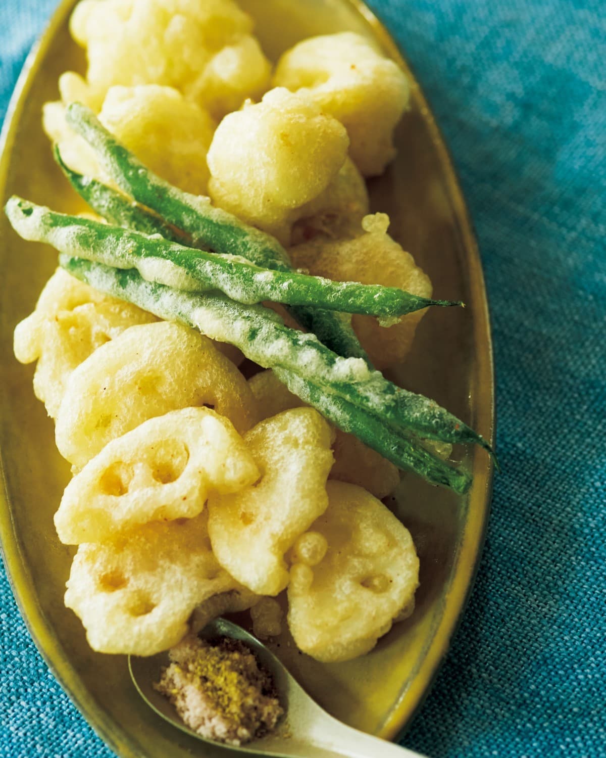 揚げ鍋に油を高さ3cmほど入れ、中温(※)に熱する。ボールにころもの材料を入れて泡立て器で混ぜる。れんこんをころもにくぐらせて油に入れ、3分ほど揚げる。カリフラワー、いんげんも同様にする。器に盛り、山椒塩を添える。