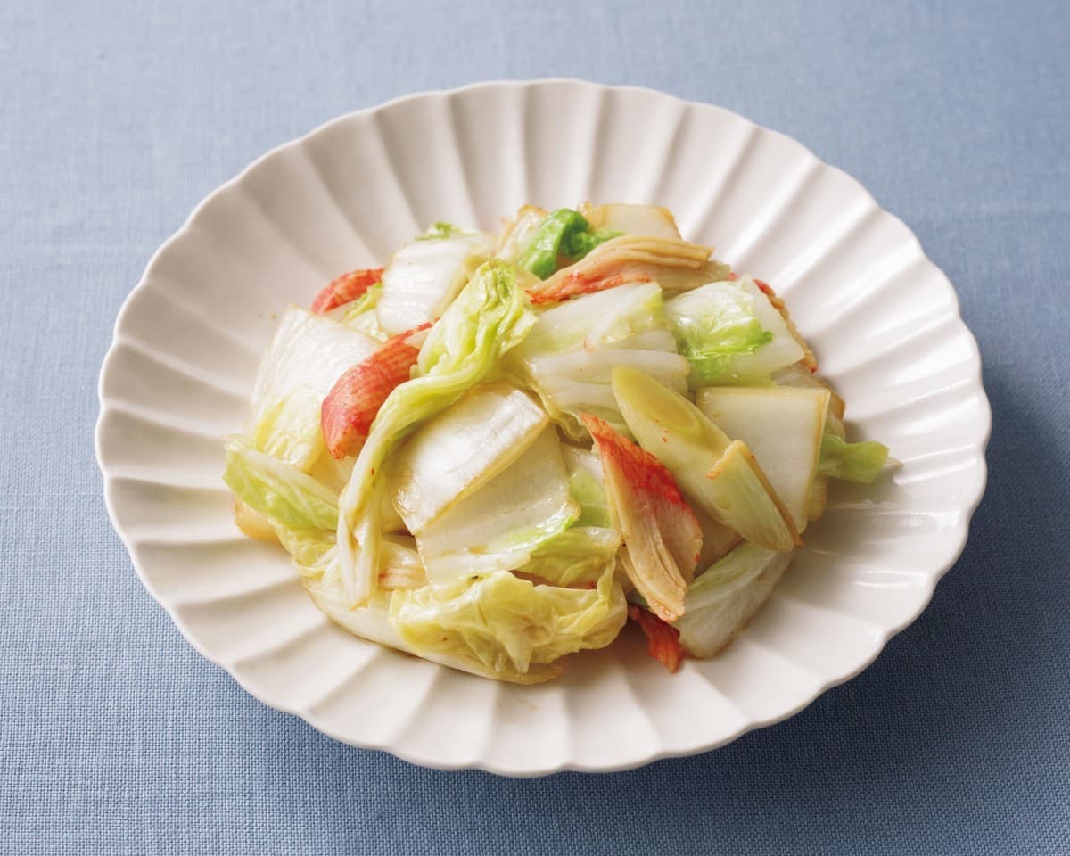 白菜をかにかまとさっと炒めるだけ。おつまみにも。