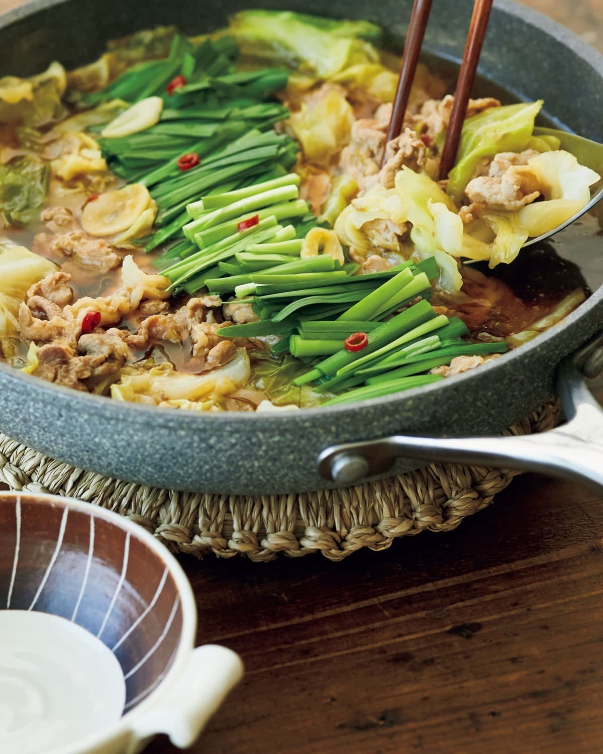 キャベツをしっかり柔らかく煮てから、にらを加えるのがポイント。にらに適度な歯ごたえが残りますよ。