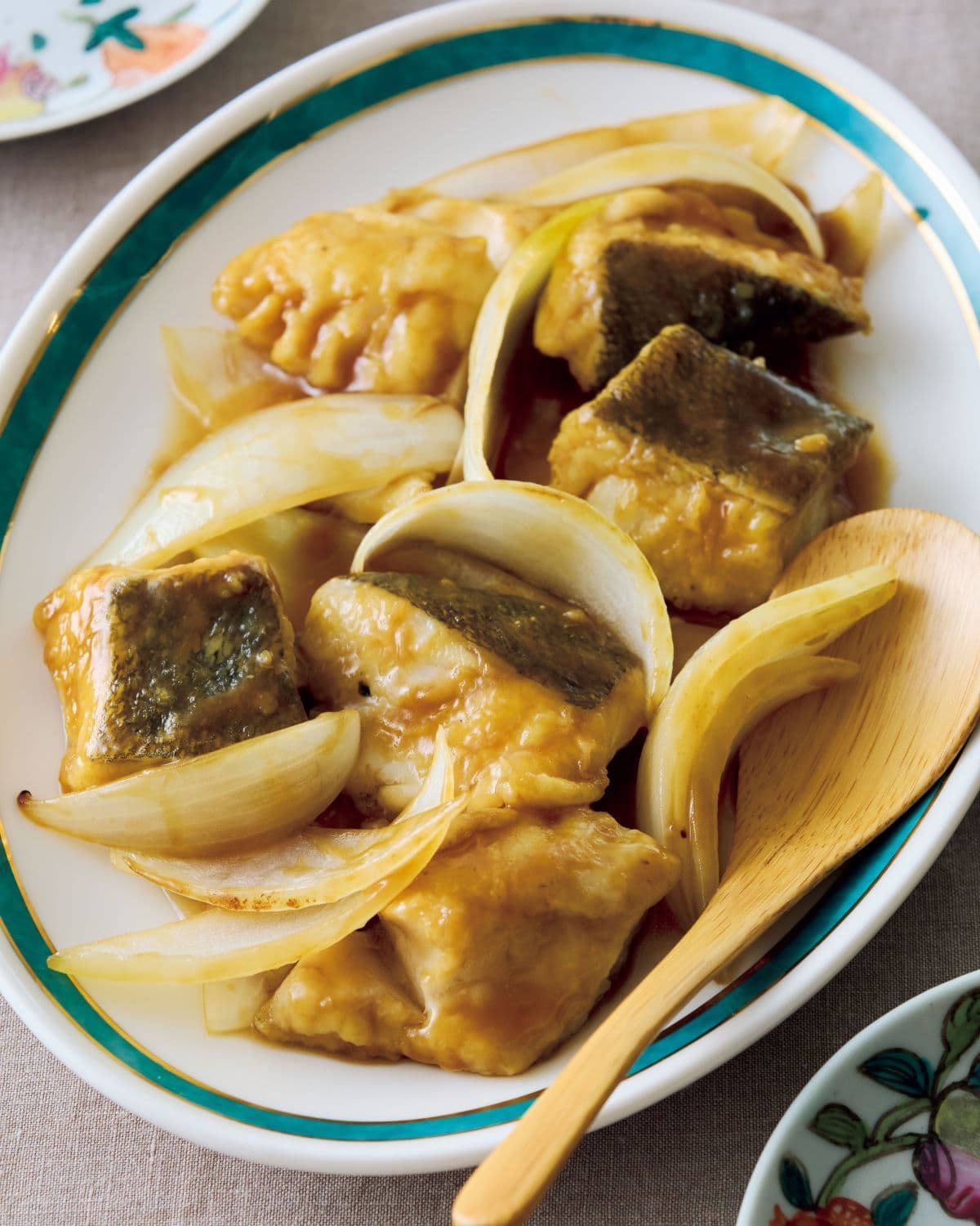 淡泊なたらを酢豚風の味つけで。ほどよい酸味でさっぱり食べられ、軽いとろみで食べごたえも〇。