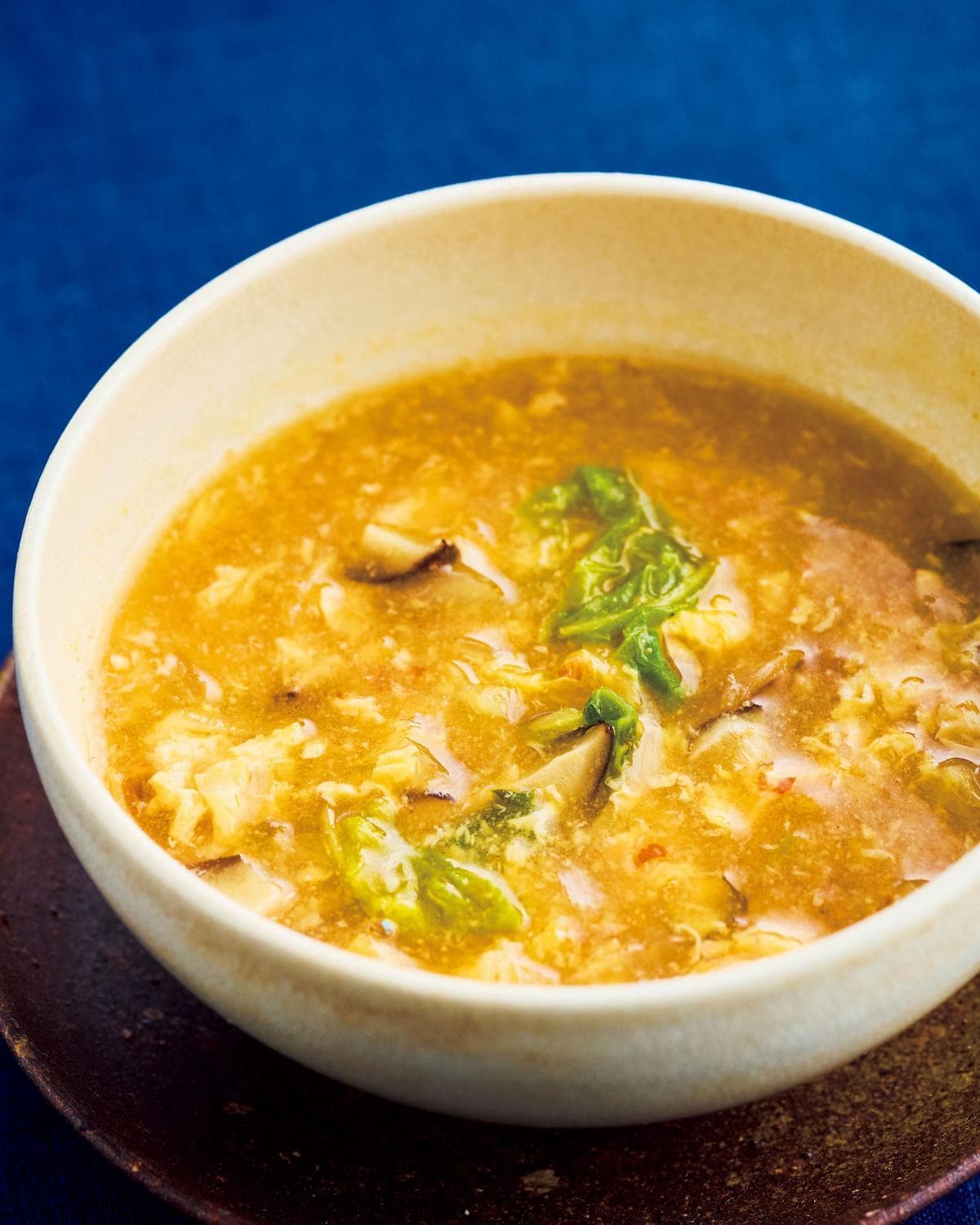 酸っぱ辛いスープはあとを引く味。体がしんから温まります。