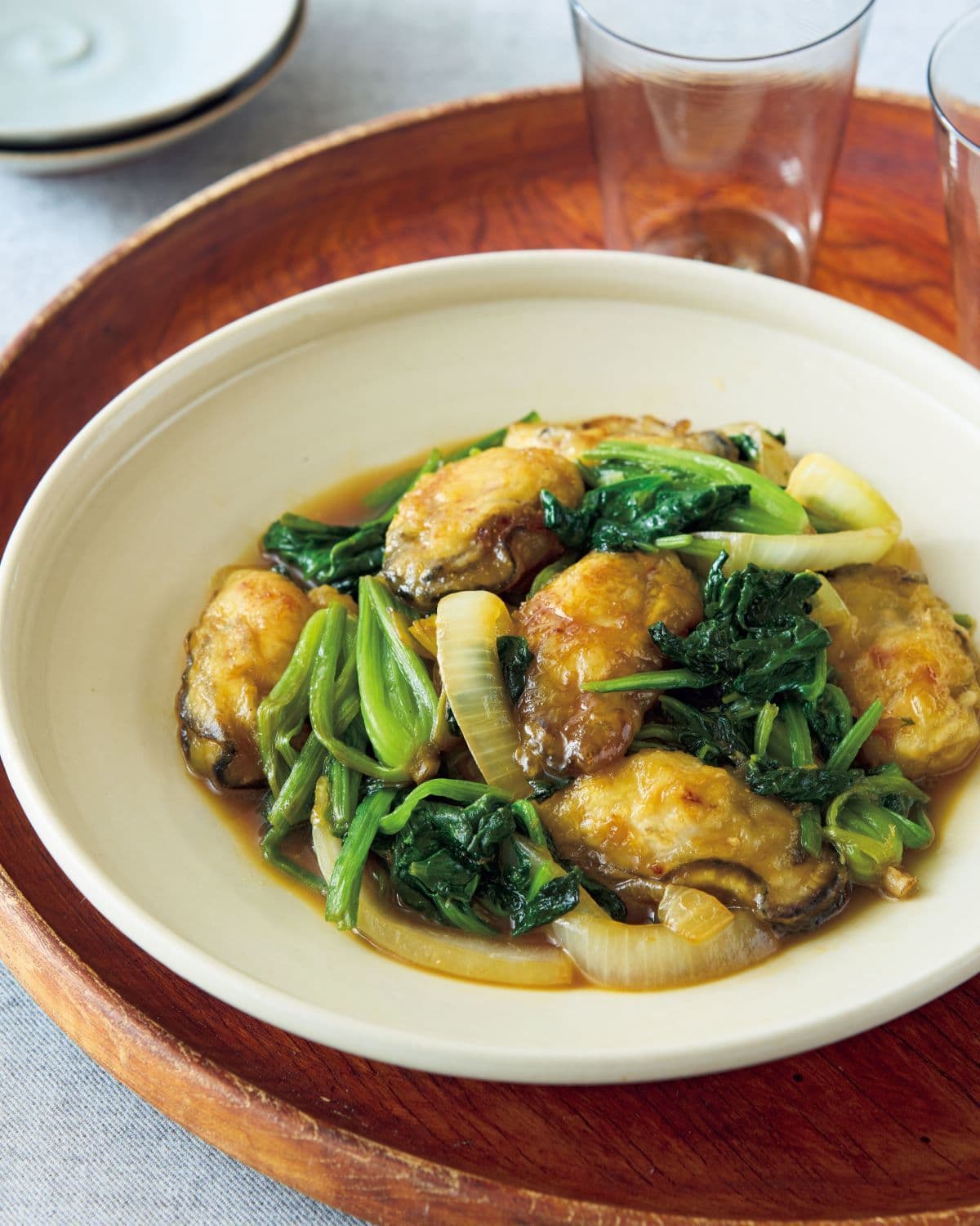 かきとほうれん草を組み合わせ、シンプルなバターソテーに。にんにくの風味で食欲倍増。