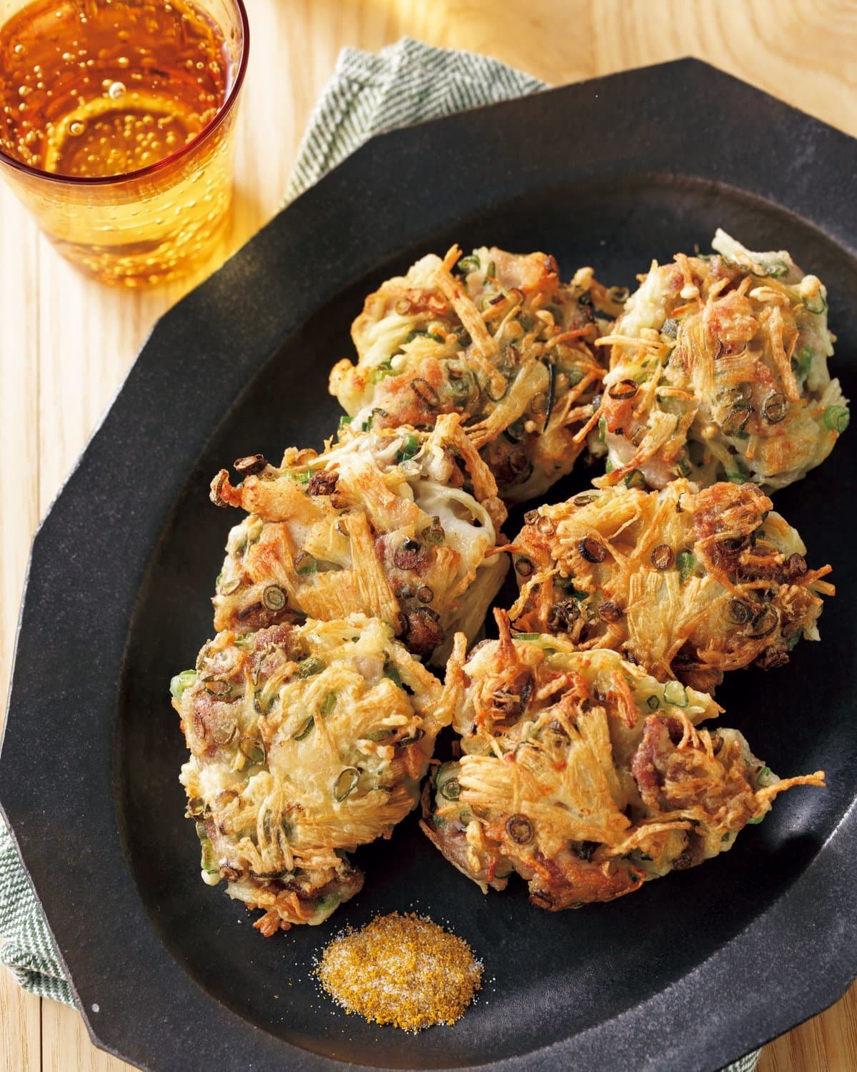 豚こまとえのきの焼きかき揚げ