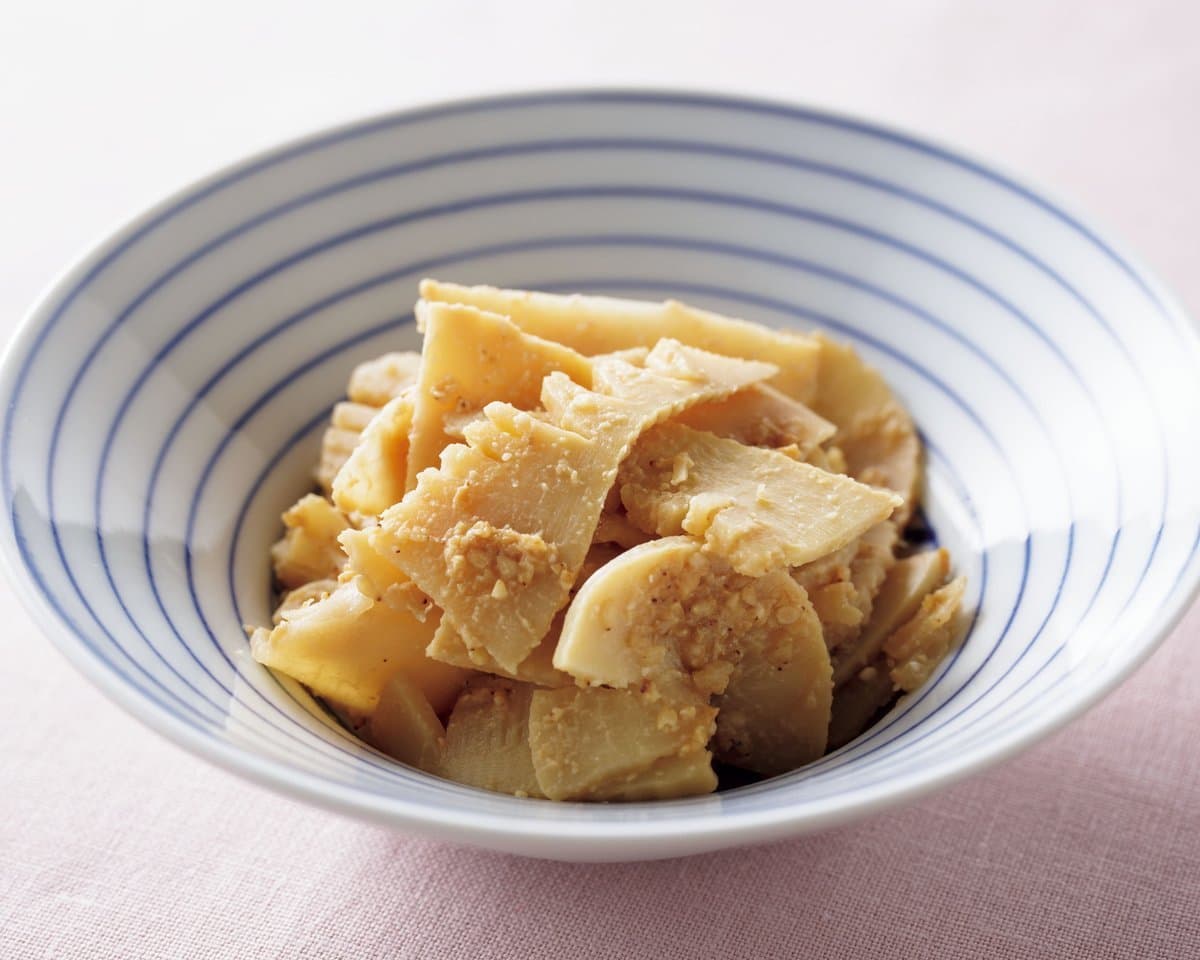 鍋に水2カップ、しょうゆを入れて中火にかけ、煮立ったら【1】のたけのこを入れて2分ほどゆで、ざるに上げて汁けをしっかりときる。【1】のボールに加えてよく混ぜる。