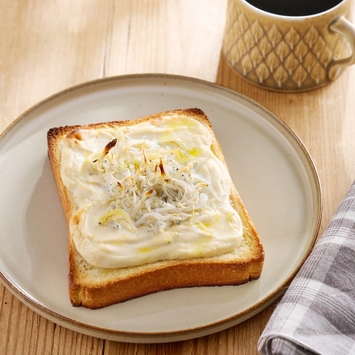 Aを混ぜる。食パンにA、しらすをのせる。オリーブオイルをかけてオーブントースターに入れ、こんがりとするまで4~5分焼く。