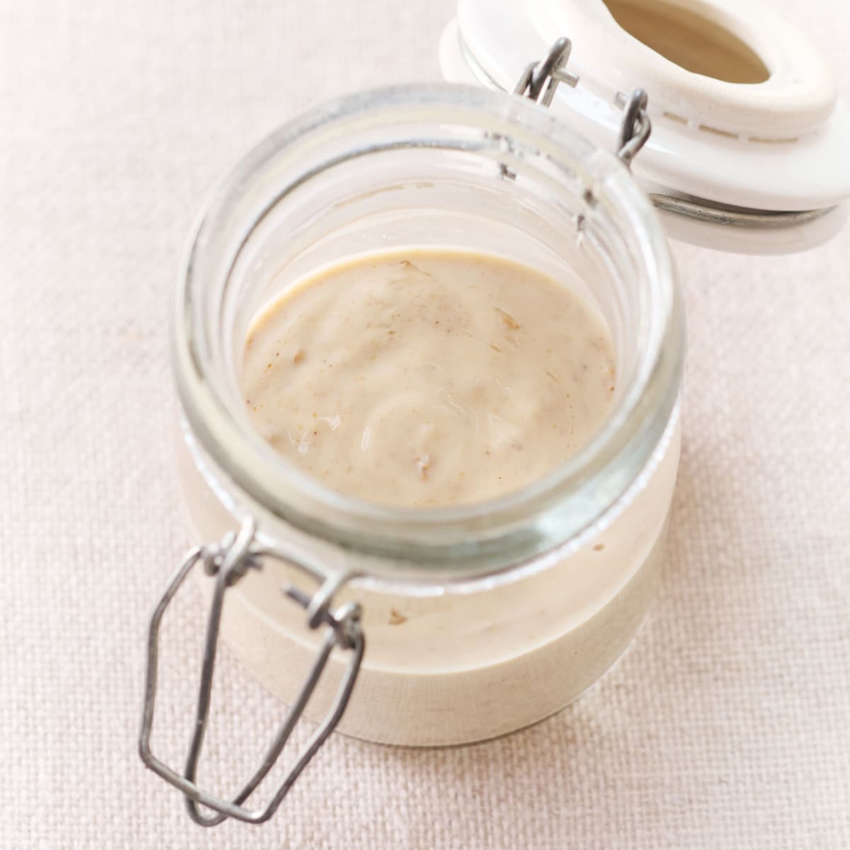 ごまの甘みと香ばしさが引き立って、濃厚なのに「豆乳の力」のほどよい酸味でさっぱり軽やか。にんじん、ツナとあえてサンドイッチの具材にするもよし、切ったトマトにあえるだけでも、うまみたっぷりの一品に!冷蔵で2〜3日保存可能です。