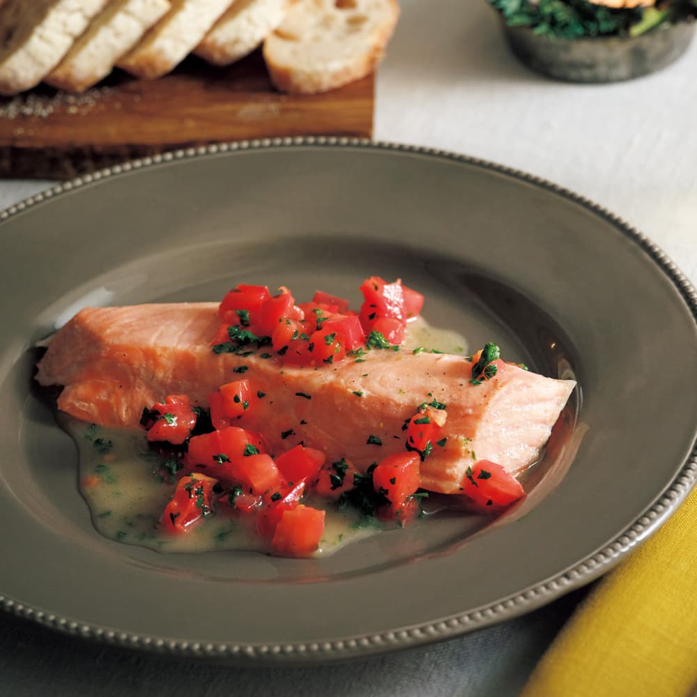 こくとうまみのあるバターソースがサーモンのおいしさを引き立てます。 バターは小さく切って冷やしておくと、均一に溶けて乳化しやすくなります。