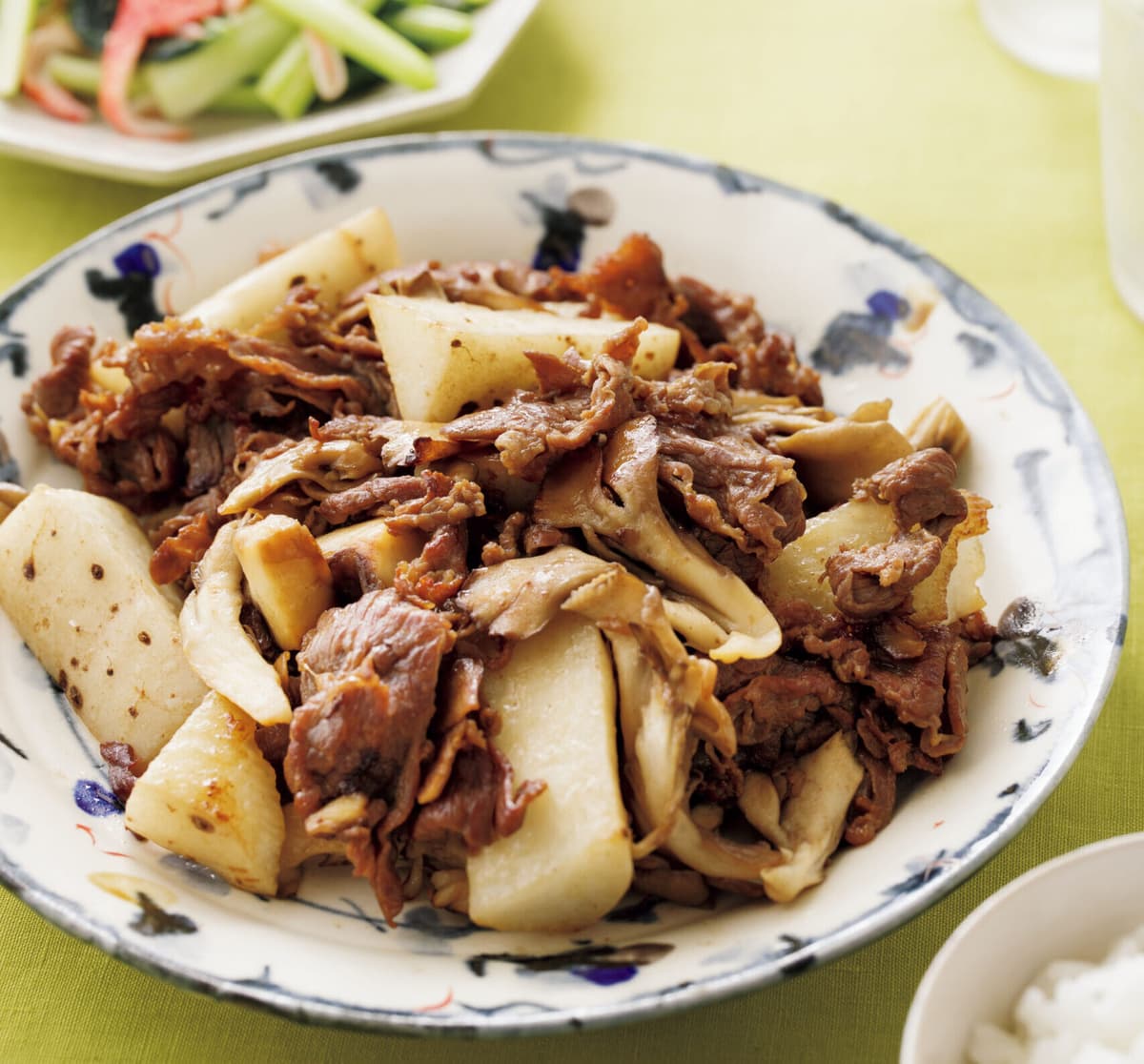 牛肉に味をしっかりつけてからまいたけ、長いもと炒め合わせることで、味にメリハリのある一品に。
