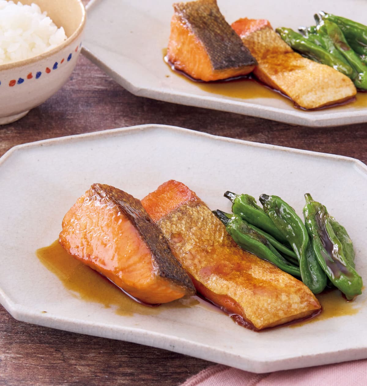 鮭としし唐の照り焼き