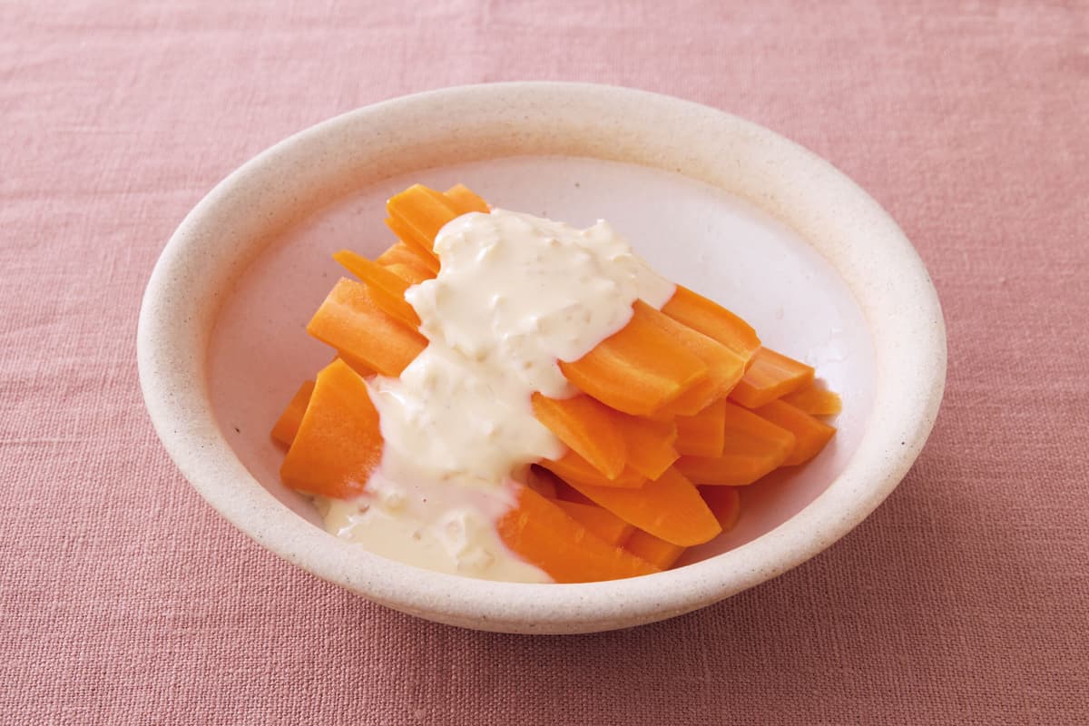 サラダやあえものにするときは、生で使うことの多いにんじんですが、かるく火を通すと甘みが増します。電子レンジ加熱は短時間でほどよく火が通ります。