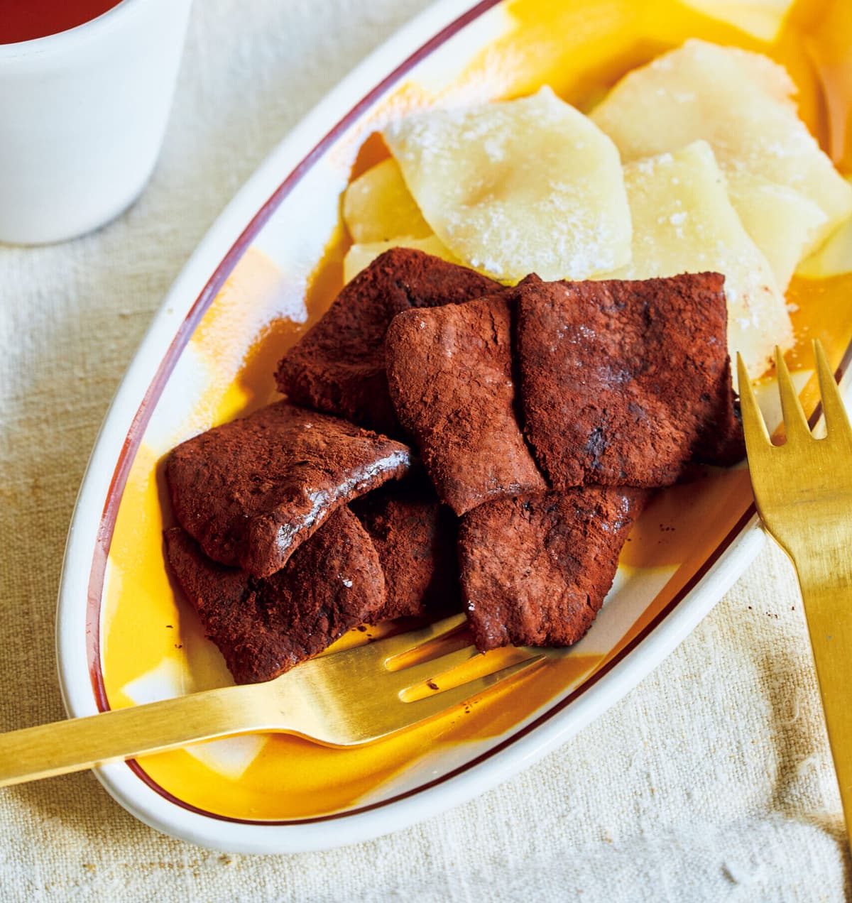 ミルクチョコレートをホワイトチョコに、ココアを片栗粉に替えてください。(1人分269kcal、塩分0.0g)