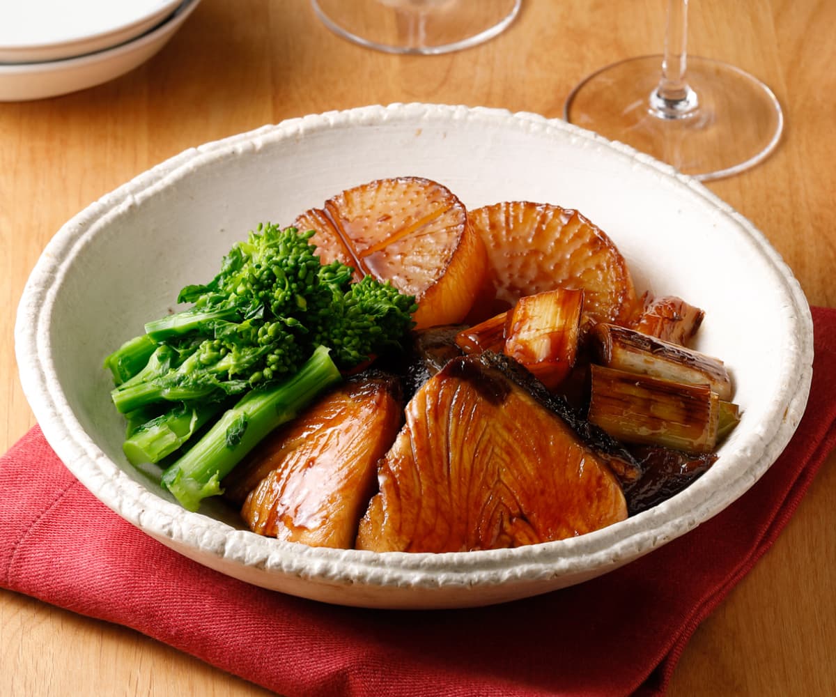 脂ののったぶりに大根のやさしい甘みが寄り添う、冬ならではのとっておきの一品。こんがり焼きつけた香ばしさと、甘辛く濃厚なたれの味わいが、赤玉プレミアムとの相性を深めます。