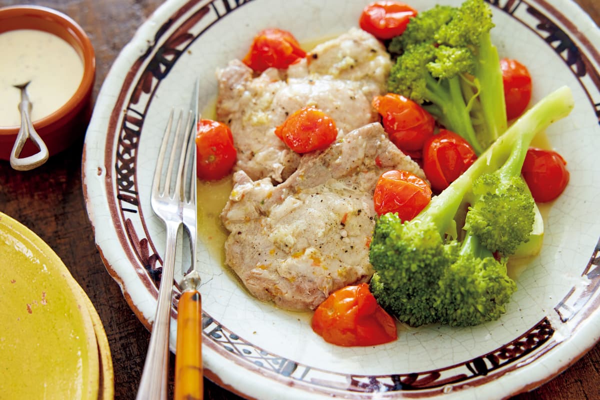 豚肉と野菜のオイル蒸し ヨーグルトマヨソース