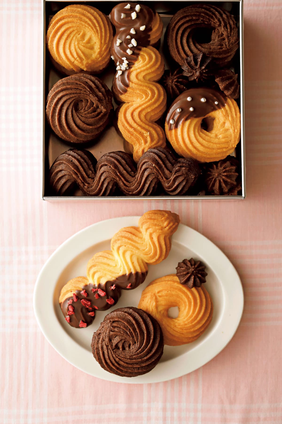 絞り出して焼き上げる、繊細な形が魅力のクッキー。 形や大きさは自由自在なので、お好みのサイズに合わせても。