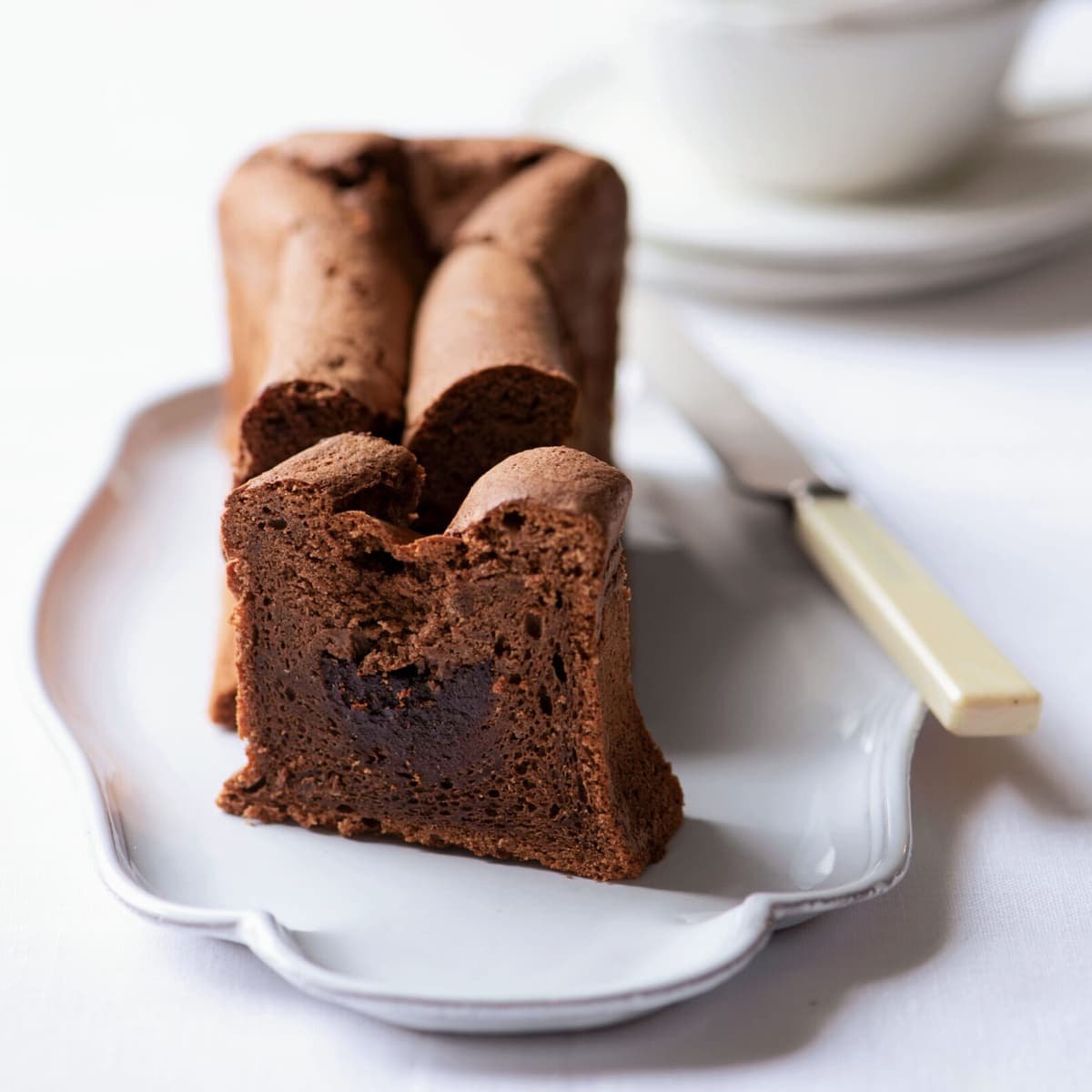 チョコレート生地に埋め込むガナッシュが半熟に仕上げるポイント。 メレンゲ入りのふんわり軽い口当たりの生地とガナッシュが、絶妙なハーモニーを奏でます。