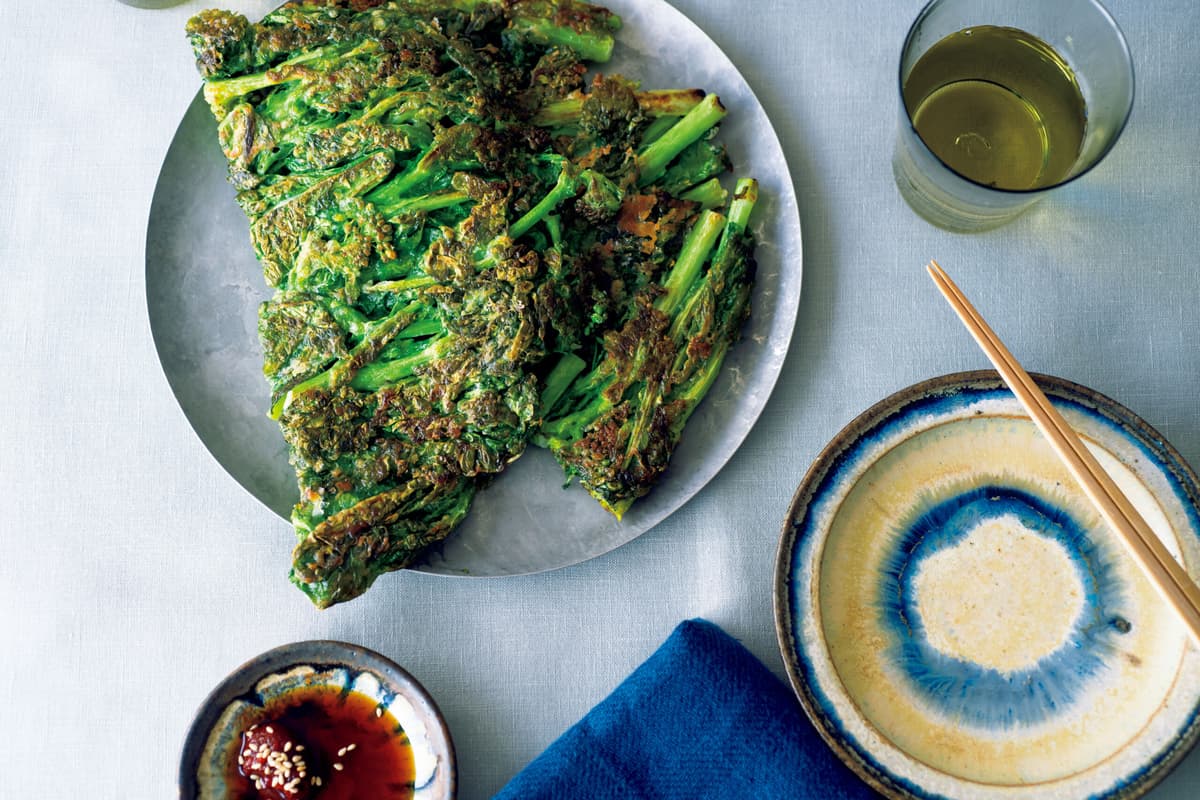 上下を返し、同様にフライ返しで押しつけながらカリッとするまで3分ほど焼き、塩少々をふる。食べやすく切って器に盛る。酢、しょうゆ各適宜とコチュジャンを小さい器に入れ、白ごまをふって添える。