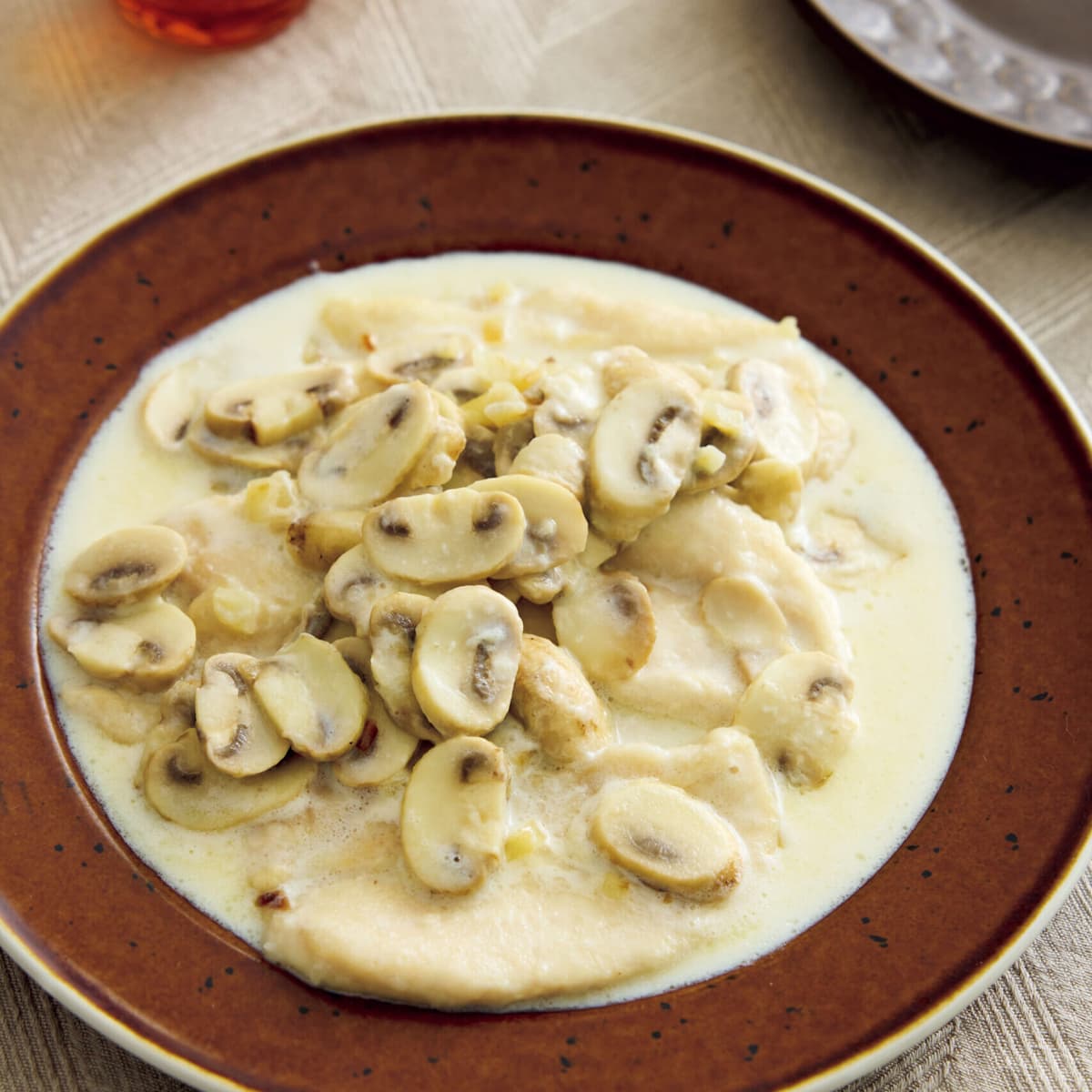 ささ身だけでなく、マッシュルームにも小麦粉をまぶしておくことで、ソースにほどよいとろみがつき、粉も残さず、使いきれます。