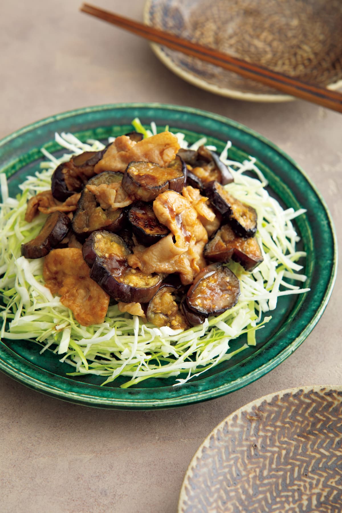 定番のしょうが焼きに、なすをプラスしてボリュームアップ。 あつあつのたれごとキャベツにのせ、からめながらめしあがれ。