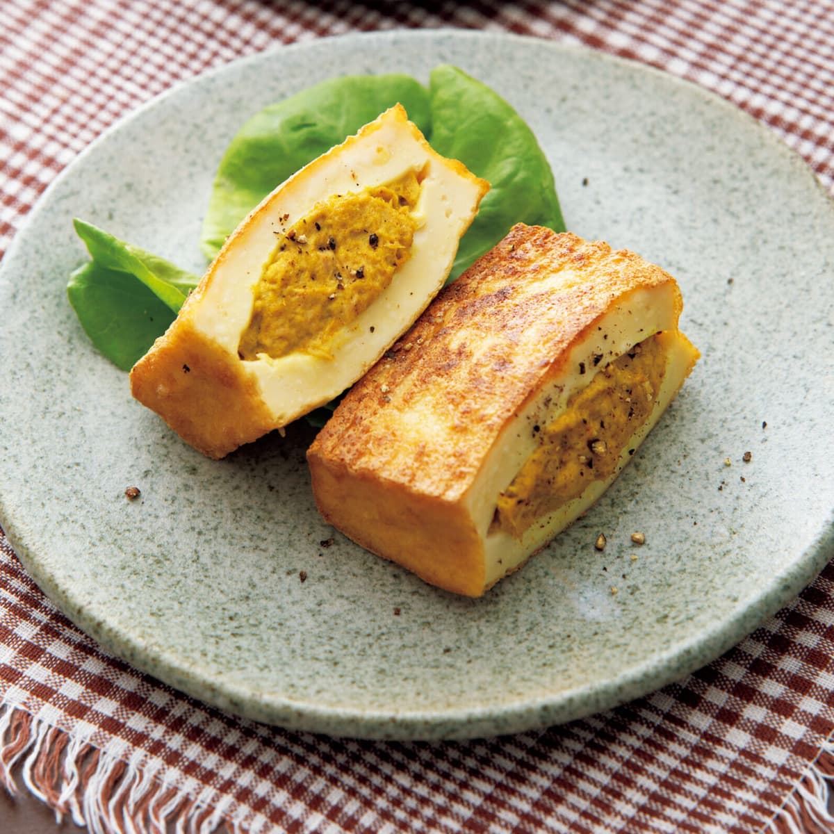 大人も子どもも大好きなツナマヨにカレー粉のスパイシーな香りをプラス。 厚揚げにたっぷりと詰めて焼きます。