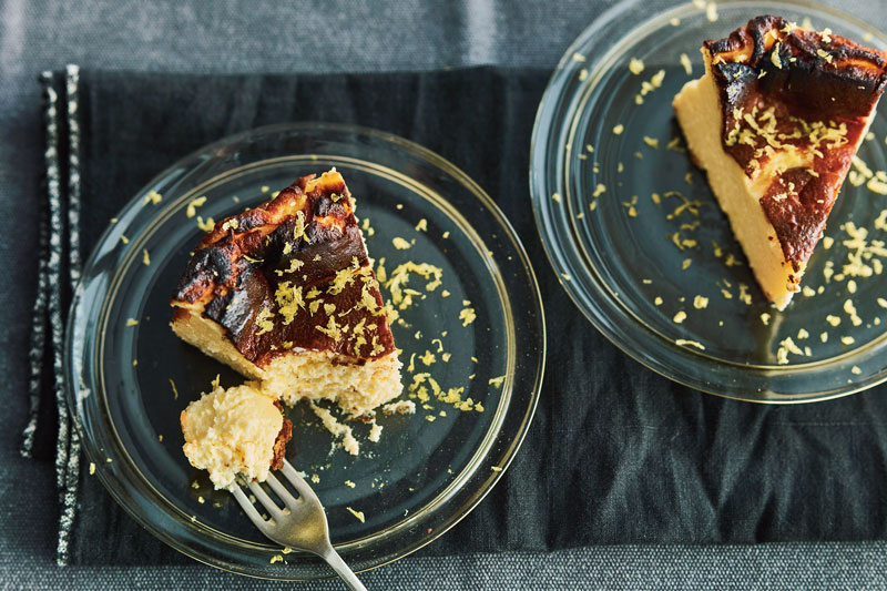 220℃のオーブン(下段〜中段)で約45分、表面が焦げ茶色から黒色になるまで焼く。型に入れたままケーキクーラーなどにのせてさまし(※1)、好みのサイズに切り分ける。ラップをし、冷蔵で約4日間、冷凍(※2)で約1カ月間保存可能。